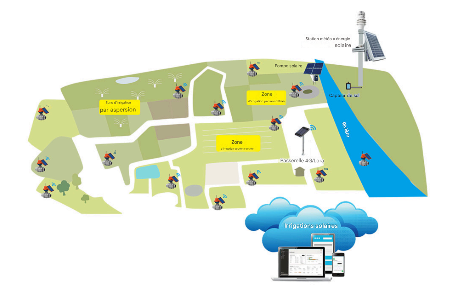 Le système LoRa est une solution d’irrigation intelligente conçue pour les zones agricoles. Il utilise :